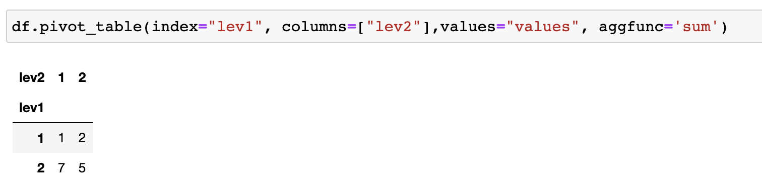 해결 방법은 pivot_table() 함수를 사용하는 것입니다. 이때, aggfunc를 넣어줍니다.