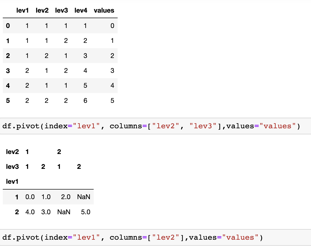 한번 더 살펴보겠습니다. 아래와 같은 table이 있을 때, columns로 lev2, 3을 넣으면 정상적으로 동작하지만 level2만 넣으면 에러가 발생합니다. 여기서 우리는 level2 대신 level3만 단독으로 넣어도 동일한 에러가 발생할 것이라고 생각할 수 있습니다.