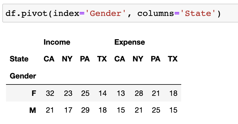Columns에 지정한 State는 level1 column label이 되었고, Income/Expense는 level0 column label이 되었습니다.
