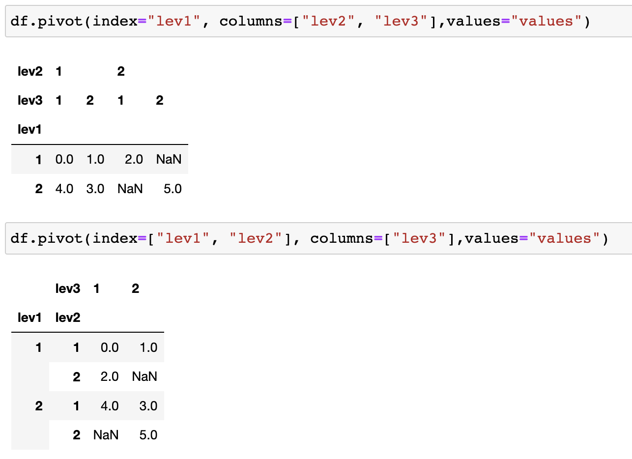 한번 더 살펴보겠습니다. 아래와 같은 table이 있을 때, columns로 lev2, 3을 넣으면 정상적으로 동작하지만 level2만 넣으면 에러가 발생합니다. 여기서 우리는 level2 대신 level3만 단독으로 넣어도 동일한 에러가 발생할 것이라고 생각할 수 있습니다.
