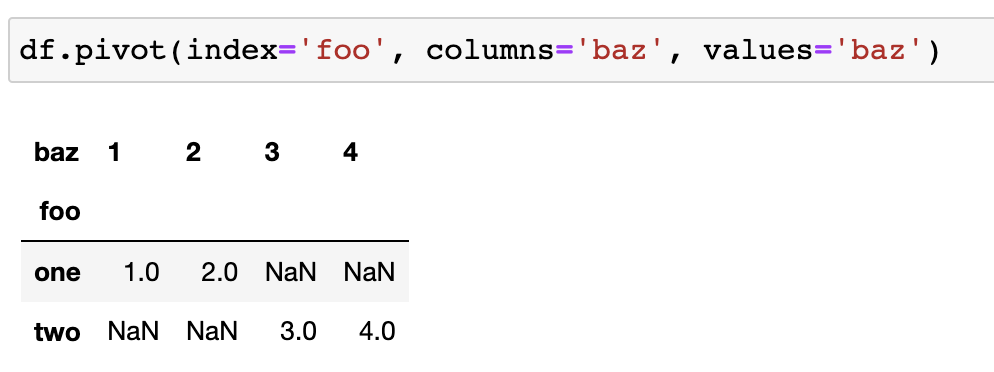 DataFrame.pivot(*, index=None, columns=None, values=None)