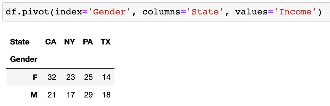 df.pivot(index='Gender', columns='State')['Income']