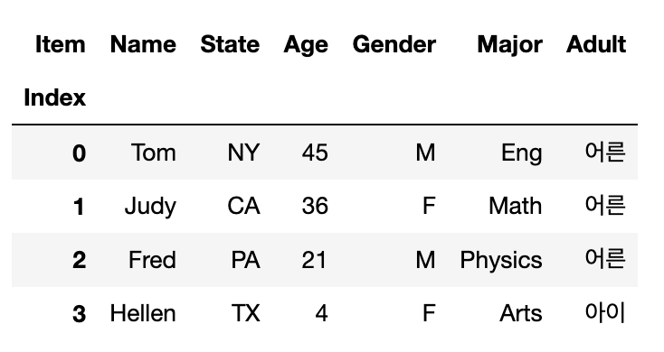>> df['Major'] = ['Eng','Math','Physics','Arts']