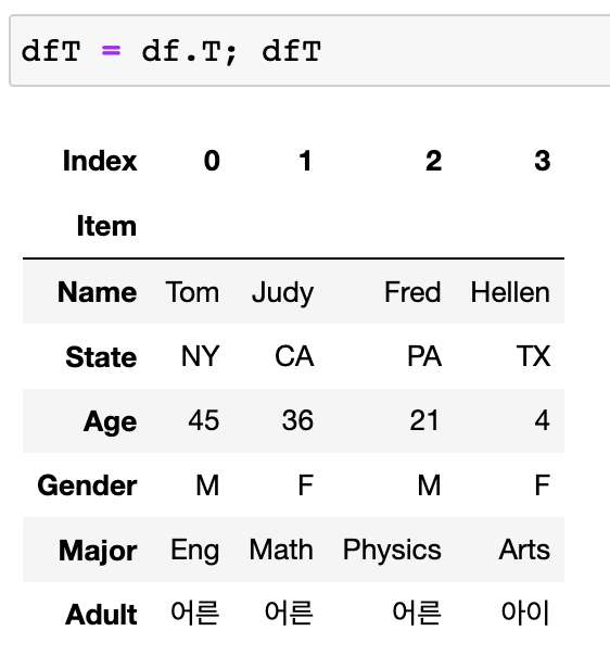 >> df.index.name='Index'; df.columns.name='Item'; df